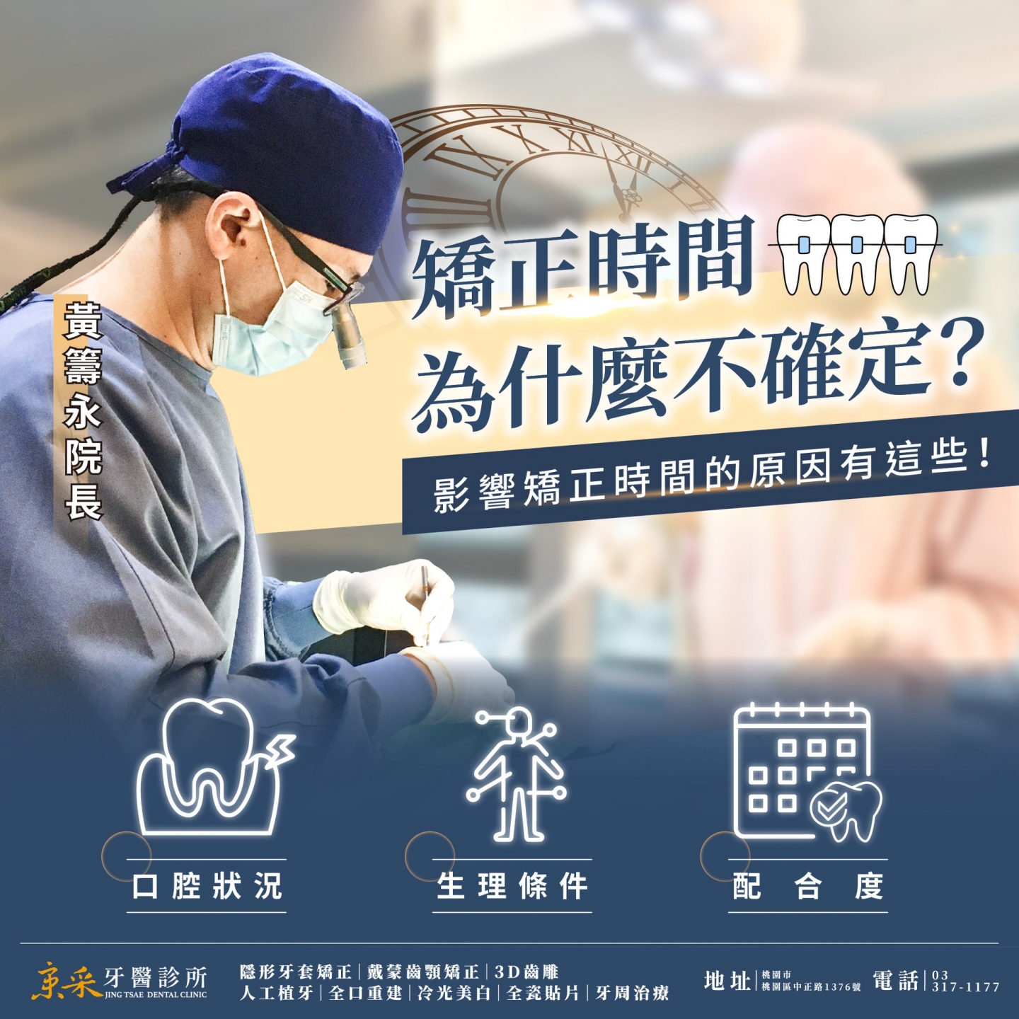 口腔條件也會影響,像是如果有蛀牙、牙周病相關的基礎治療,或是如果需要拔智齒、阻生齒的狀況,也會拉長矯正計畫的時間。